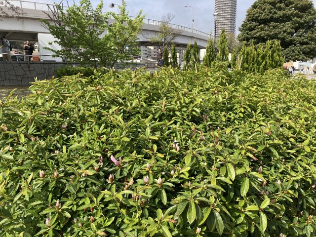 もう少しすると、植込みのヒメシャリンバイの道路側とあわせて、いっそう華やかな景色が広がります。