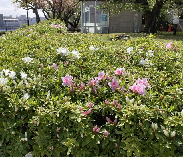 ワーキングスペースのコルセール横では、ツツジも咲き始め、公園内がいっそう華やかになってきました。