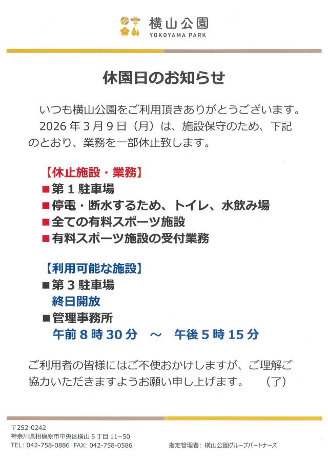 休園日のお知らせ