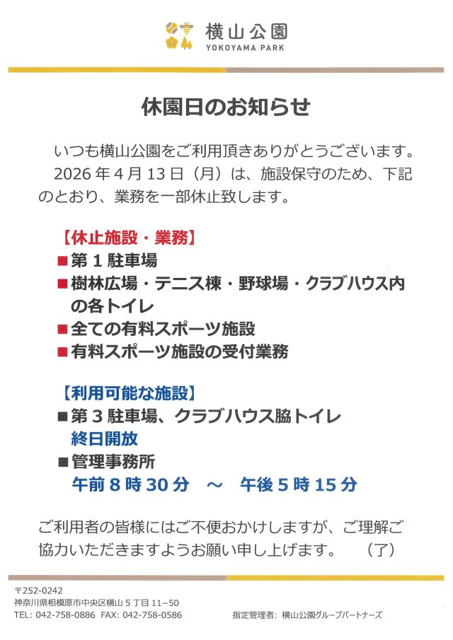 休園日(4/13)のお知らせ